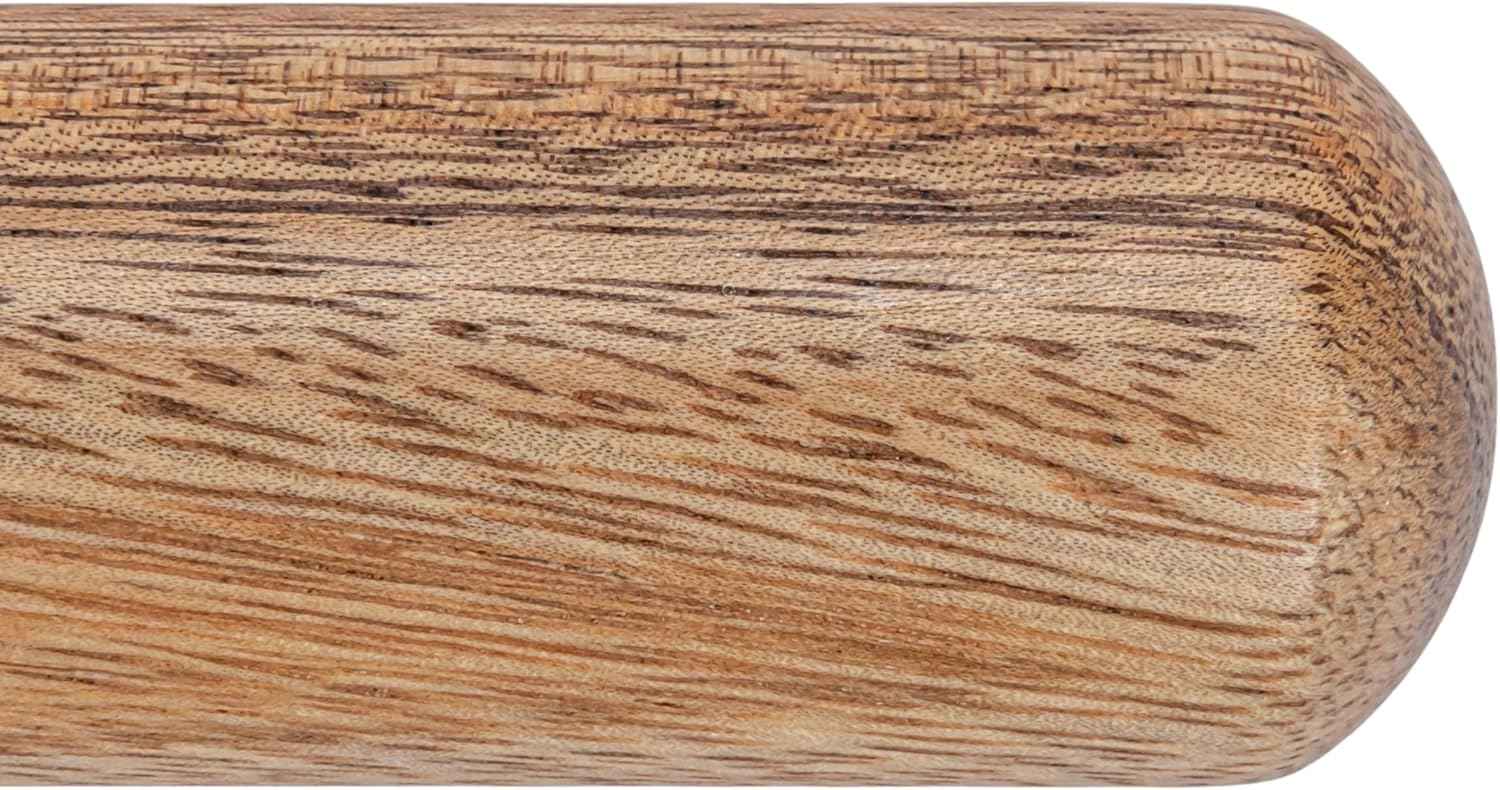This natural suar wood round rolling pin is a beautiful and practical piece that will enhance the home with its simple charm. The rolling pin is made of natural suar wood, a tropical hardwood known for its strength and durability. The suar wood has a natural color and grain, adding warmth and character to the space. The rolling pin is round, fitting any hand comfortably and securely.