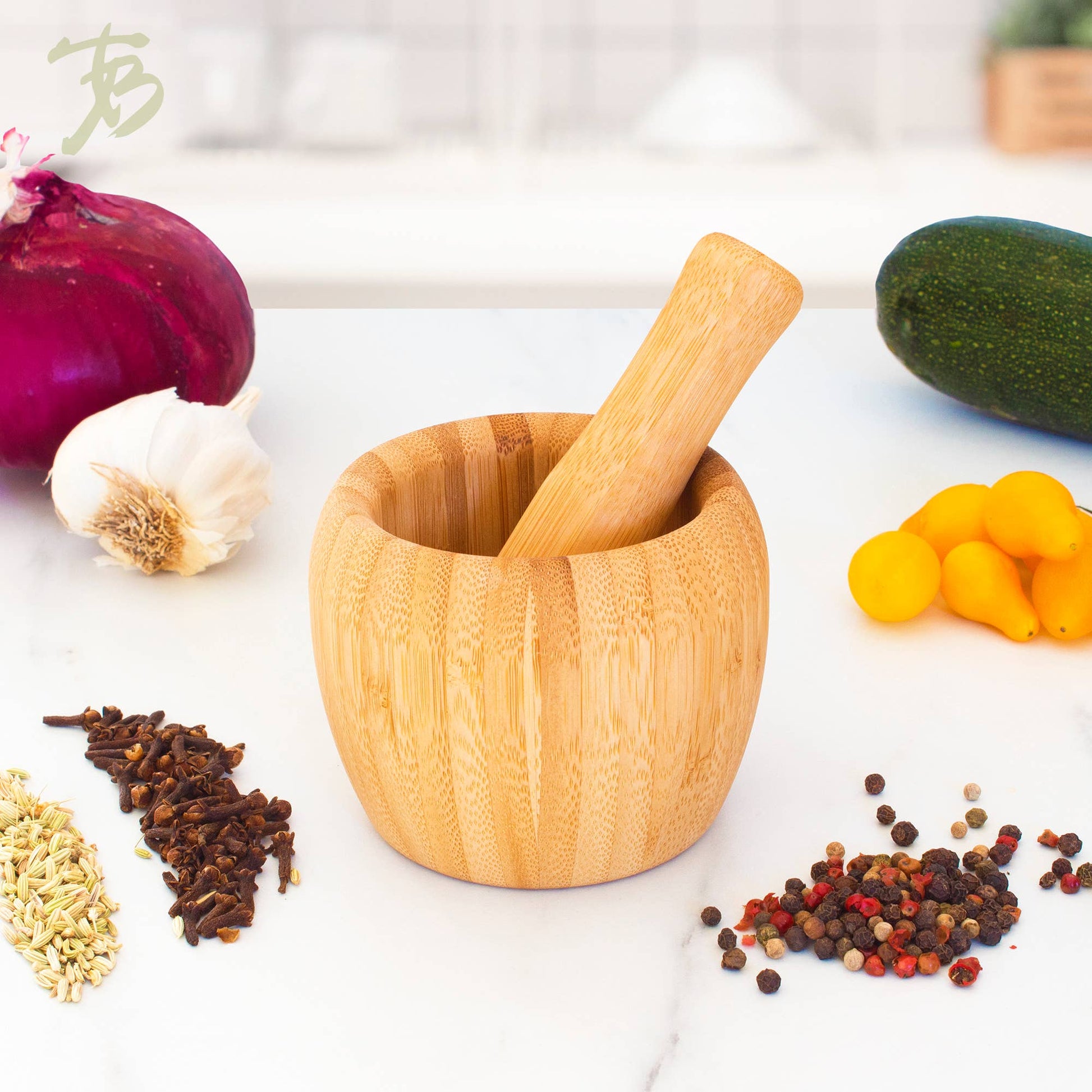 A kitchen must-have with a ton of history! Using a mortar and pestle will allow you to unleash more flavor from their ingredients, which is why they've been used for thousands of years! Unlike the cutting that occurs in a food processor, the smashing garlic, seeds, spices and more extracts the full flavor of the ingredient. It's a wonderful choice for making guacamole, Caesar dressing, pesto, chutney, aioli, hummus, chimichurri and much more. The mortar features a 6.75 ounce capacity and the pestle measures 5 inches.