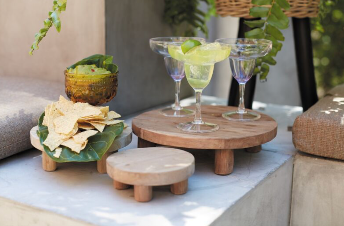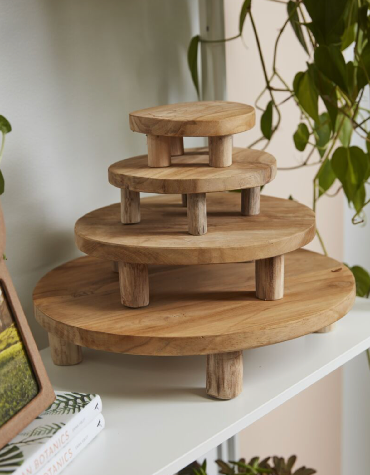 These natural teak plant stands provide just the right amount of elevation to highlight plants and prevent pot condensation from hitting the floor.