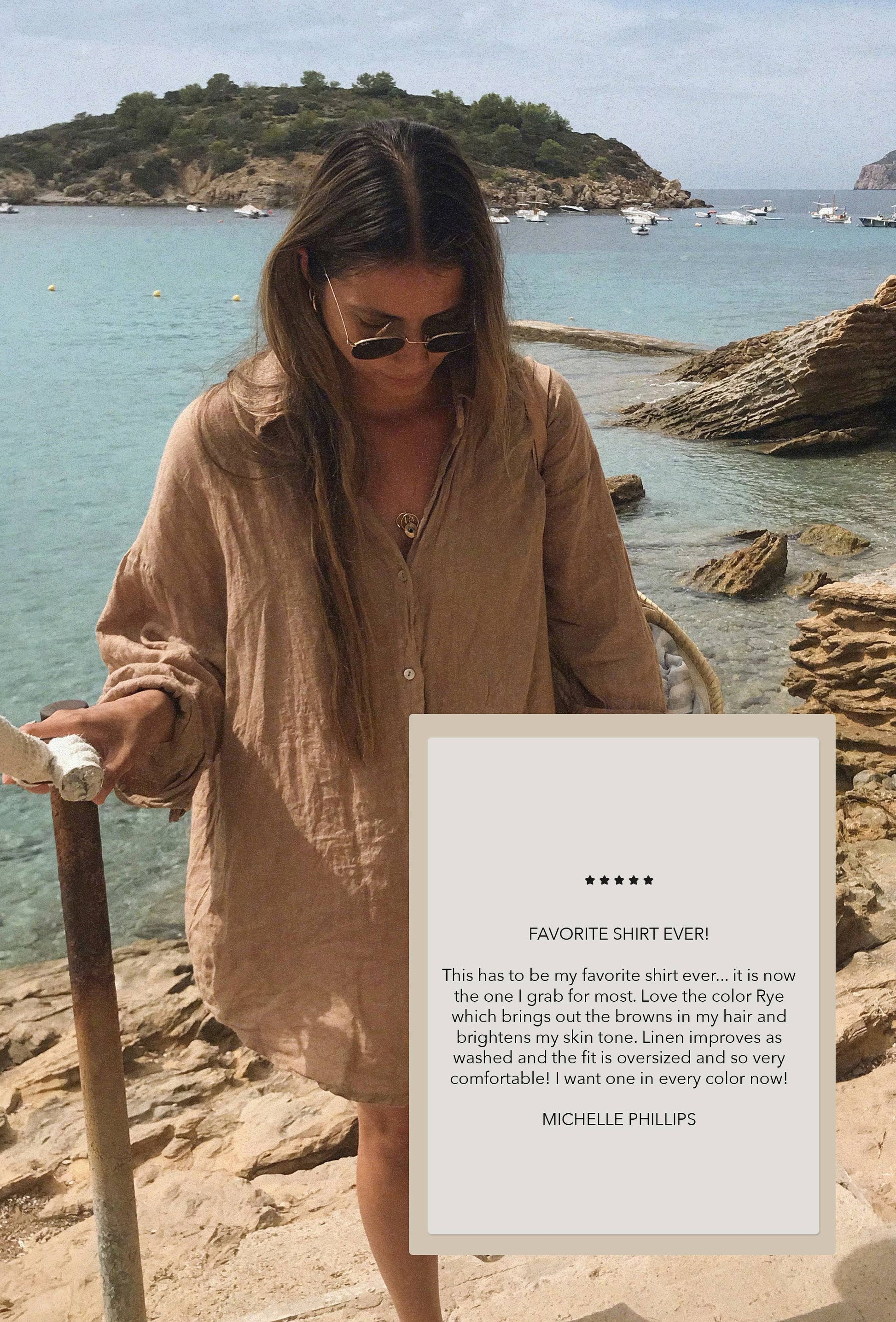 Think cool, stylish, effortlessly beautiful. A classic brown that promises to be your most treasured piece! Crafted from pure linen for a breathable finish. One size fits most, this is a long sleeve buttoned up shirt that is meant for that perfect oversized fit. Mother of pearl buttons are a beautiful edition to finish off any look, for an easy, breezy finish.