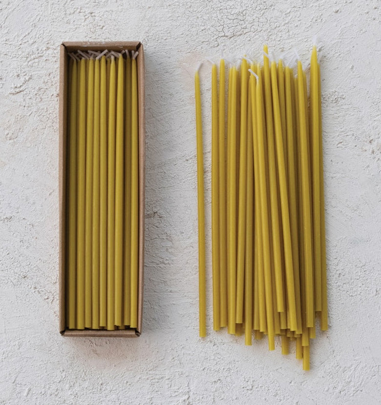 Unscented Thin Taper Candles in Box, Chartreuse Color