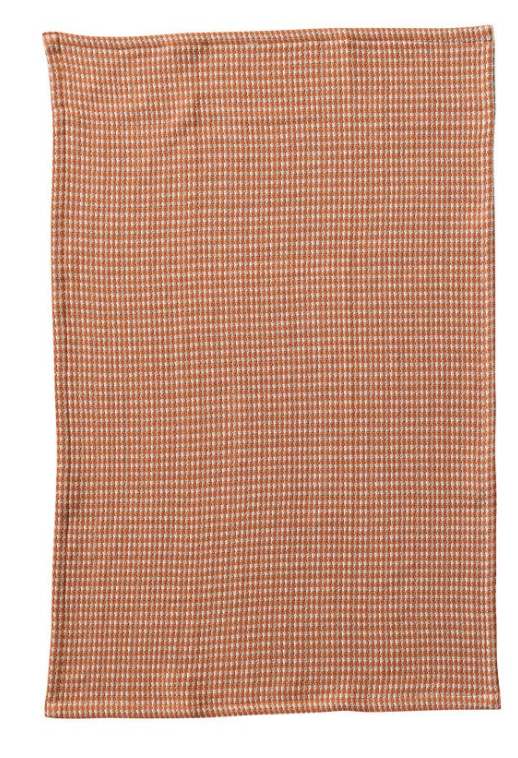 Add some color and charm to the kitchen with these woven cotton dobby tea towels. A dobby weave that creates a subtle geometric pattern and adds texture and style. The contrasting orange and charcoal colors are vibrant and eye-catching, complementing any modern or rustic decor. These tea towels are soft, absorbent, and durable, making them ideal for drying dishes, wiping spills, or covering food. They also have a hanging loop for easy storage. Made of cotton, these tea towels are machine washable and tumble dry low for easy care and maintenance. Elevate every kitchen routine and dry dishes in style with this absorbent and beautifully designed tea towel.