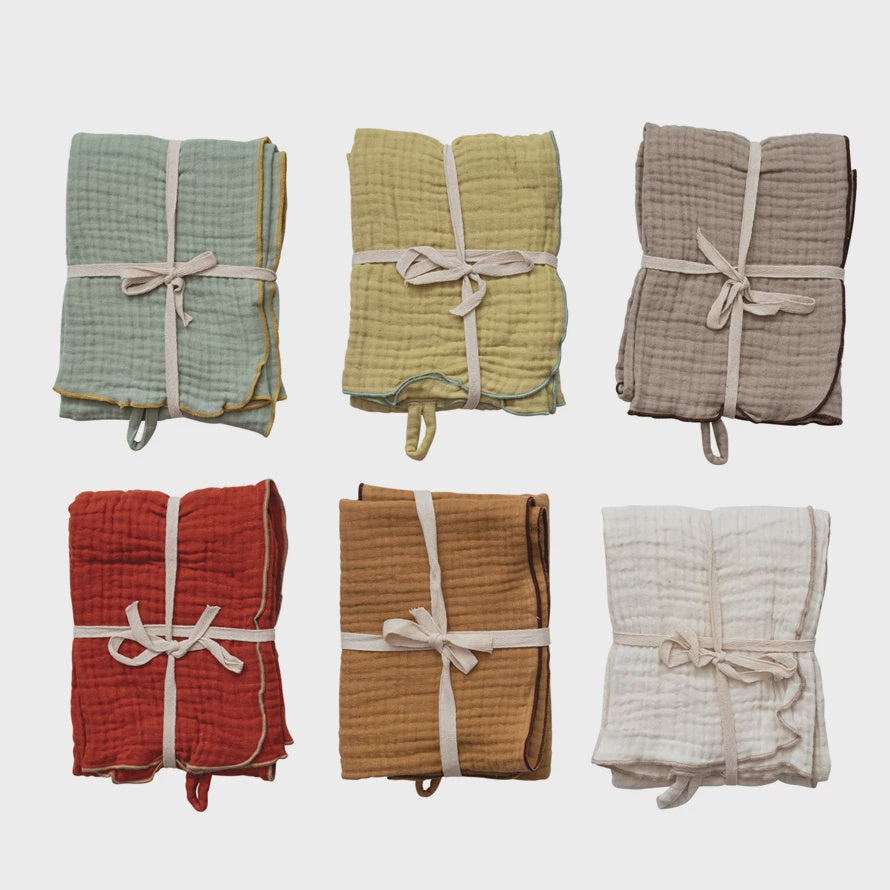Woven Cotton Double Cloth Tea Towel w/ Contrasting Stitched Edge & Loop