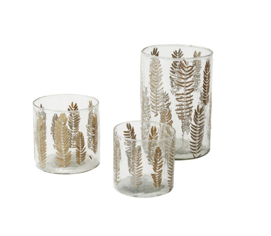 The Yew Votive is a delicate glass vessel with a unique design element layered into the glass. Dried leaves are hand pressed into a resin base, and due to the use of natural materials, each one is slightly different. The Yew can be styled with candles, florals, or stand alone as a beautiful work of art.